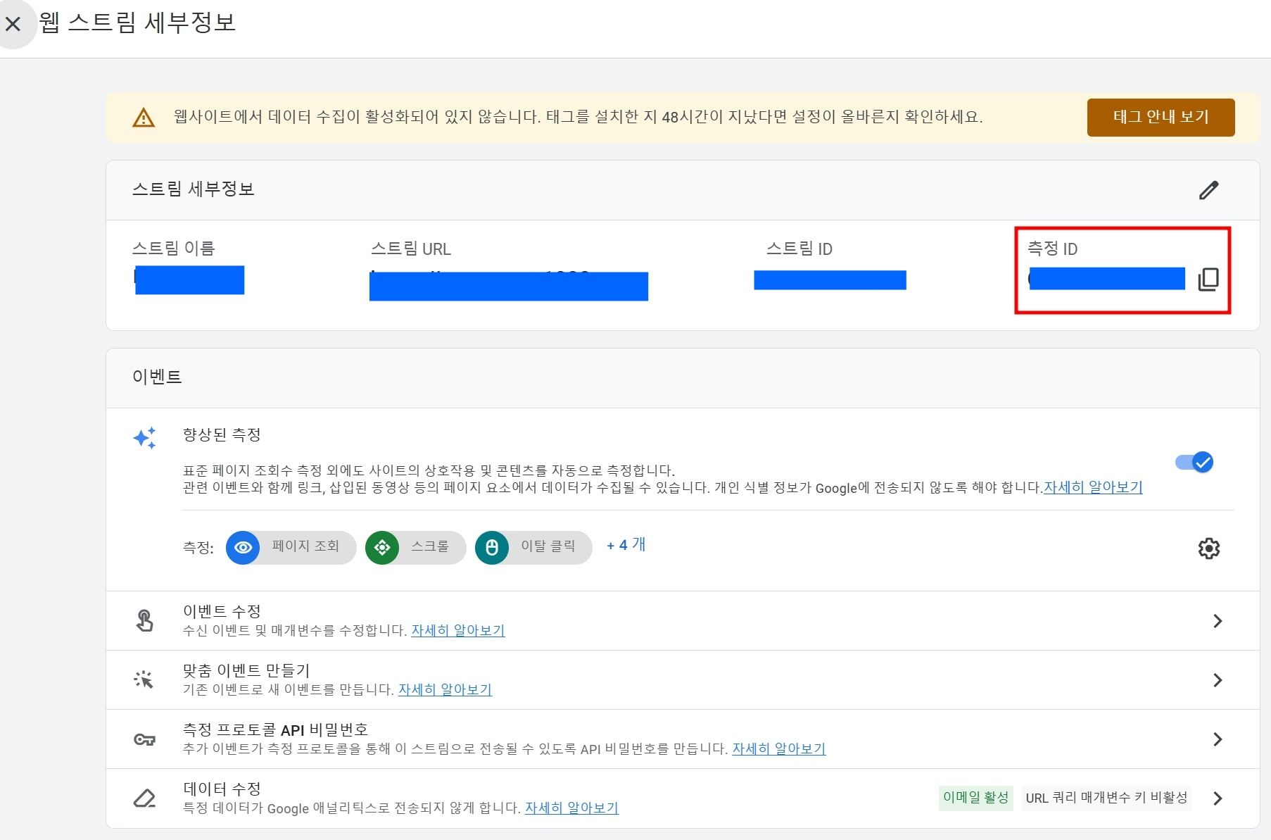 다시 아래와 같이 구글애드센스로 돌아가서 측정아이디를 복사하신 다음,