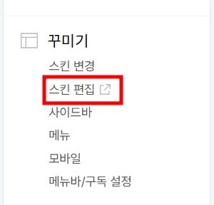 위의 내용을 복사하셔서, 티스토리로 가신 다음 내 블로그 꾸미기의 스킨편집으로 들어갑니다.
